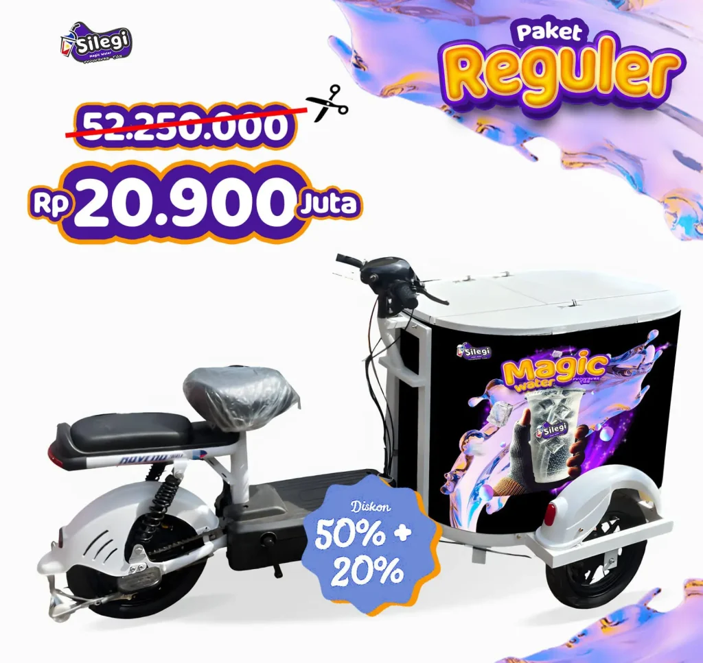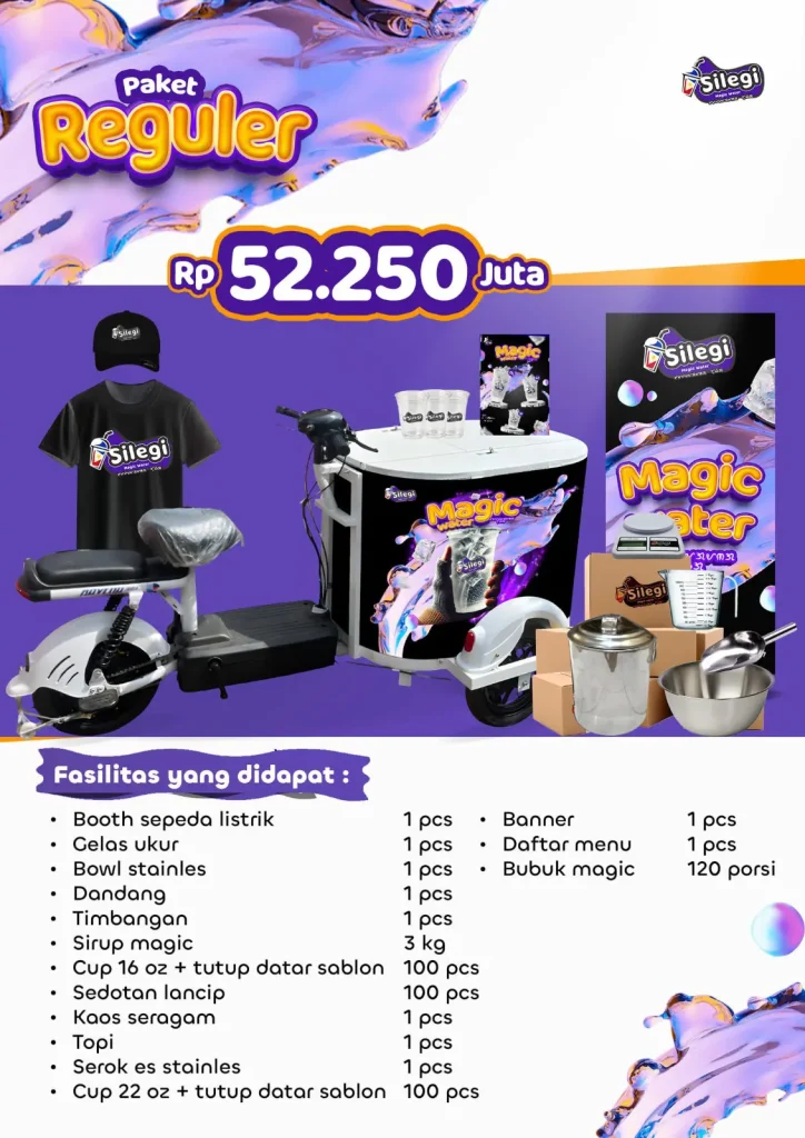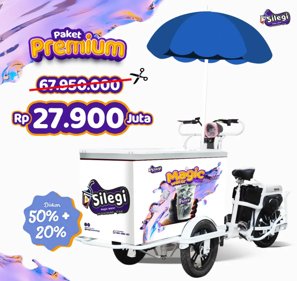 Kami sudah menyediakan semuanya untuk Anda. Mulai dari bahan baku berkualitas, konsep usaha kekinian, hingga booth siap jualan. Tinggal beli paket usaha SILEGI, dan Anda langsung bisa memulai bisnis MAGIC WATER dengan mudah..!