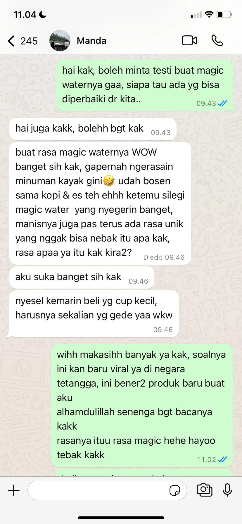 Kami adalah brand pertama yang membawa sensasi minuman viral MAGIC WATER ke Tanah Air. Tidak perlu lagi jauh-jauh ke Filipina untuk merasakan uniknya MAGIC WATER..!