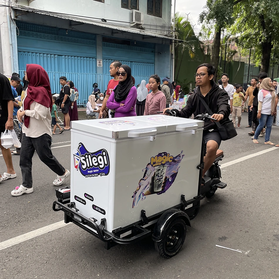 Sepeda listrik modern memudahkan Anda untuk jualan keliling ke lokasi ramai seperti CFD, pasar malam, perkantoran maupun sekolah. Jualan jadi fleksibel, omzet pun lebih maksimal..!